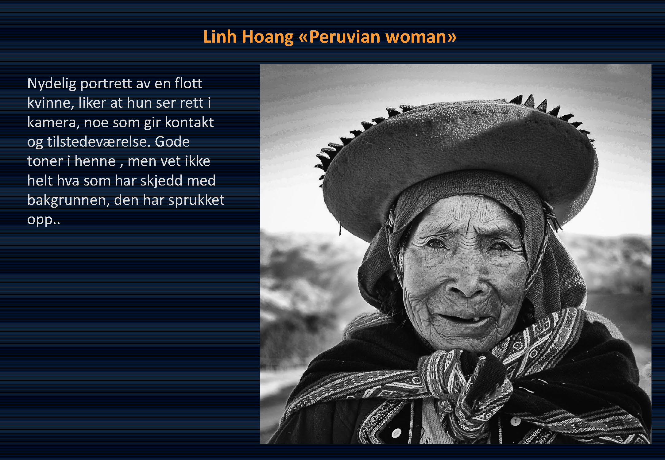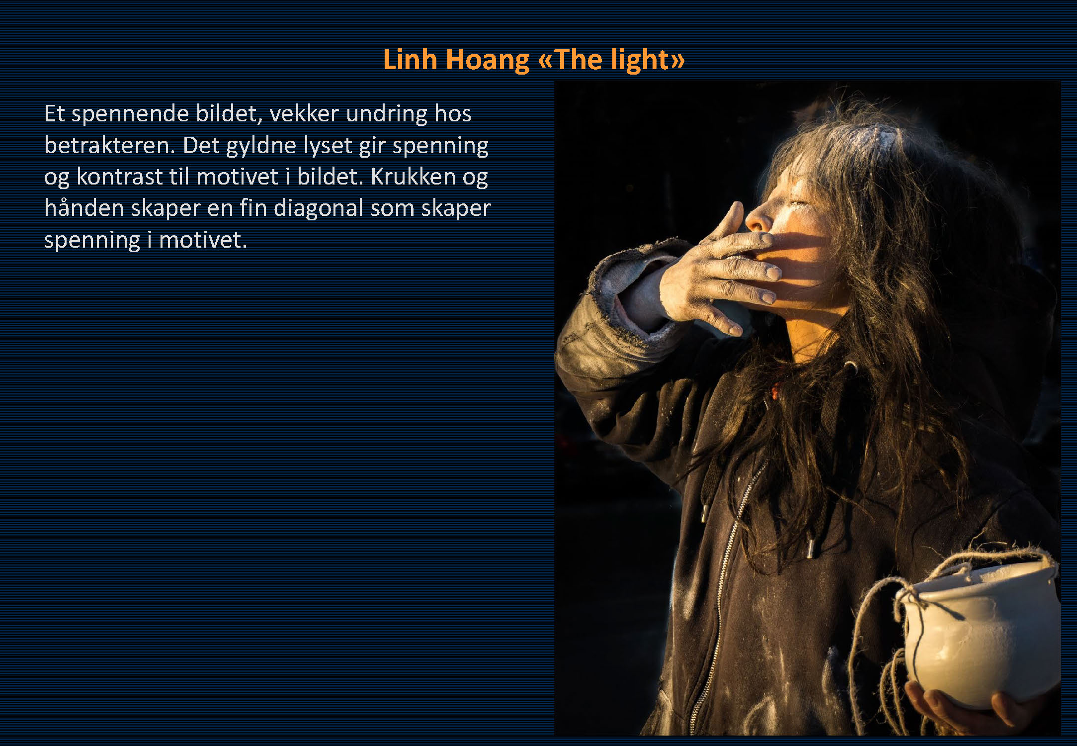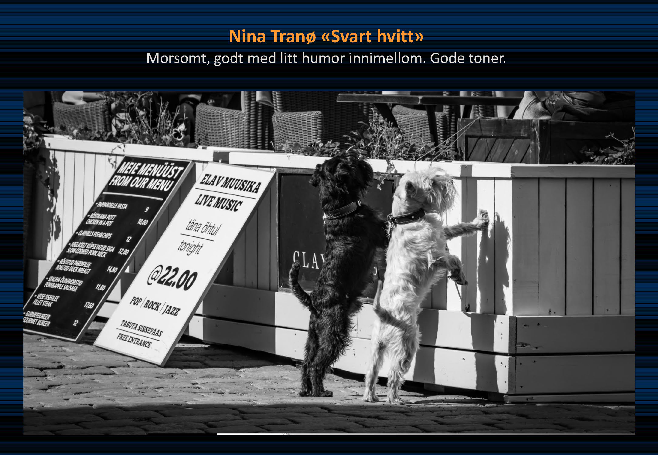 74 bilder ble levert i klassen «Monokrom – Fritt motiv». Vinner ble Olaf Aune med «Boa Vista woman». 2. plass gikk til Jonas Hallberg Eggen med «Underlag» og Linh Hoang tok 3. plass med bildet «Soul in motion».