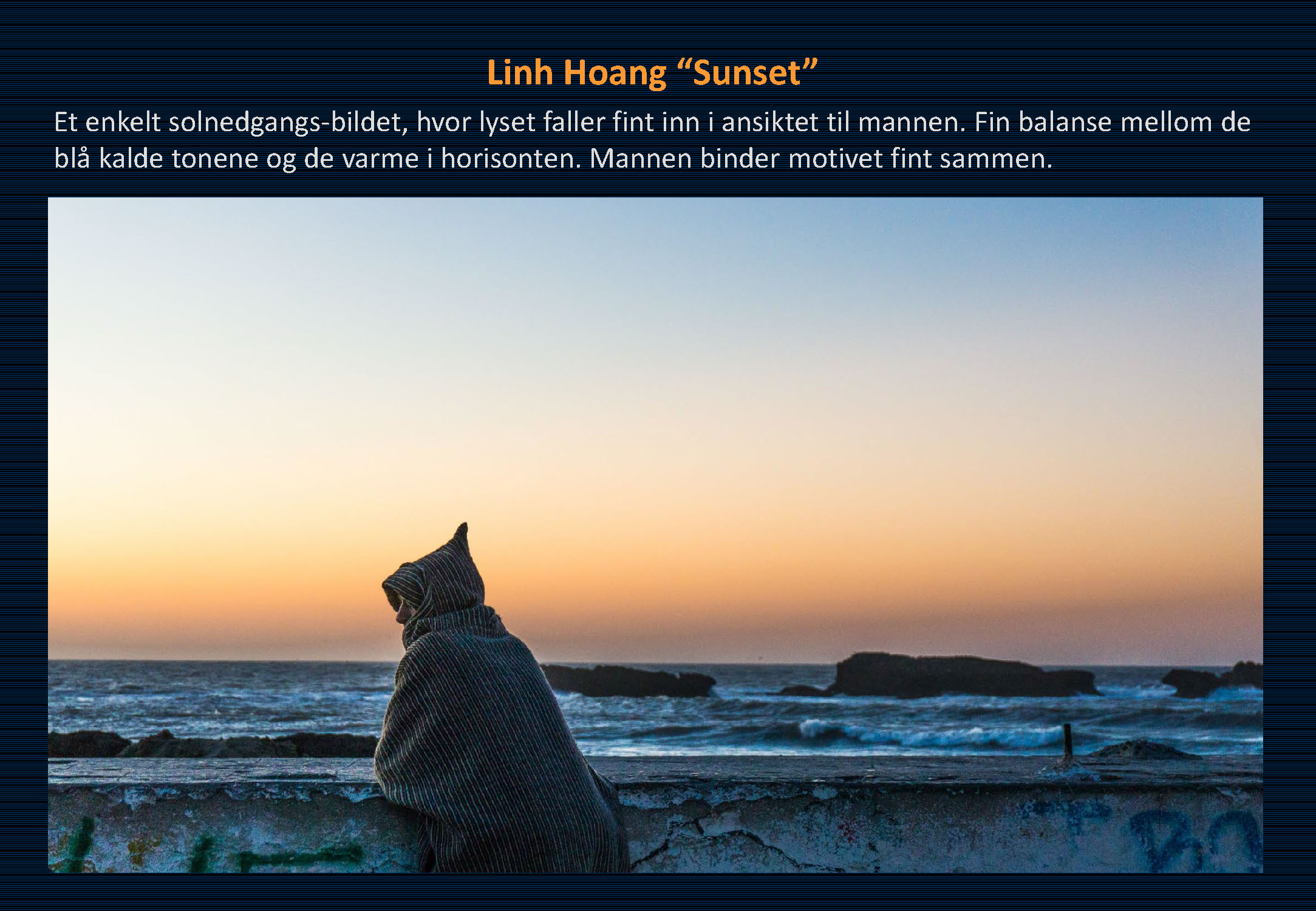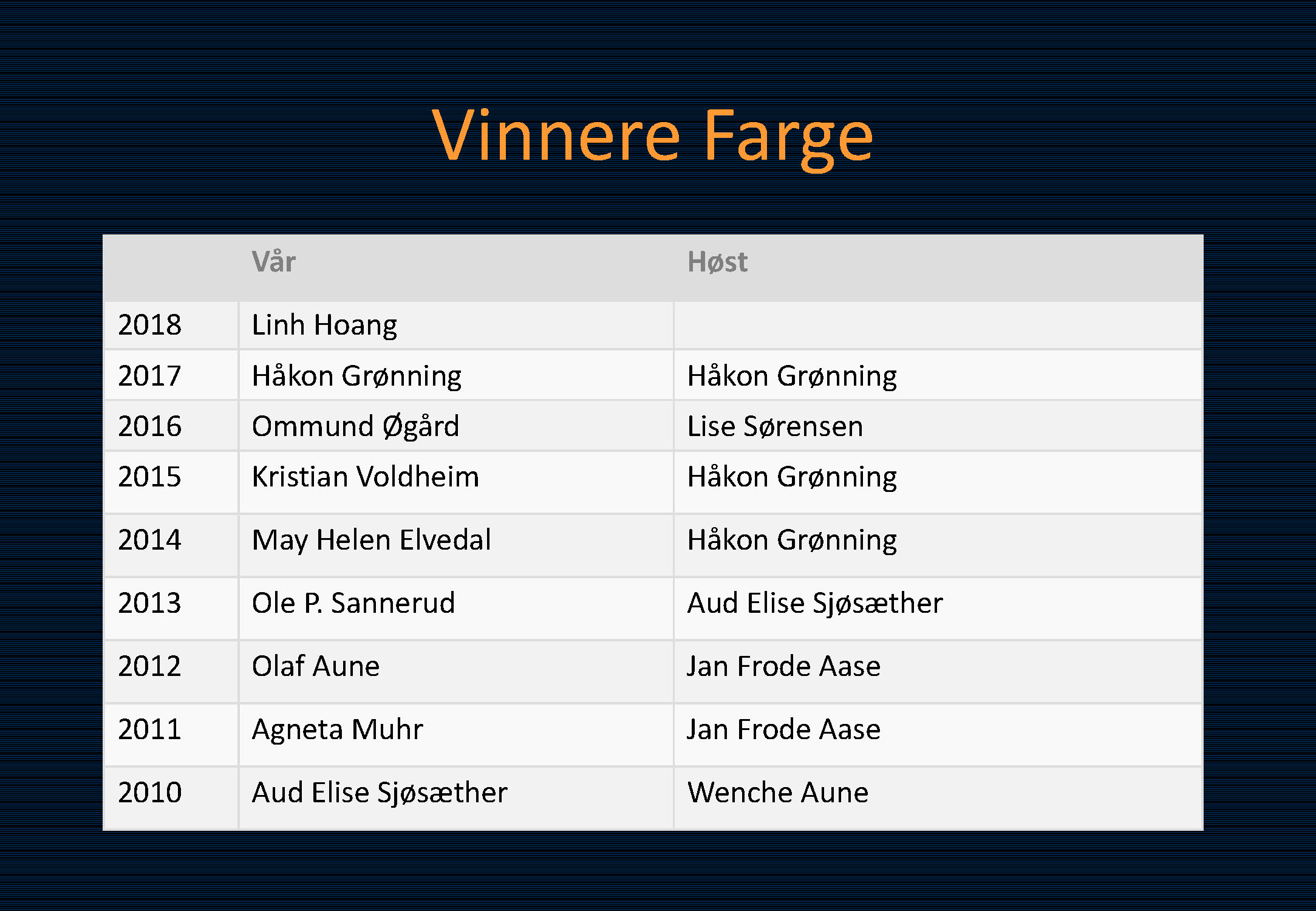81 bilder ble levert i klassen «Farge – Fritt motiv». Vinner ble Linh Hoang med «Towards the horizon». Hun tok også 2. plassen med «The light». Jonas Hallberg Eggen tok 3. plass med sitt bilde «Marmor».