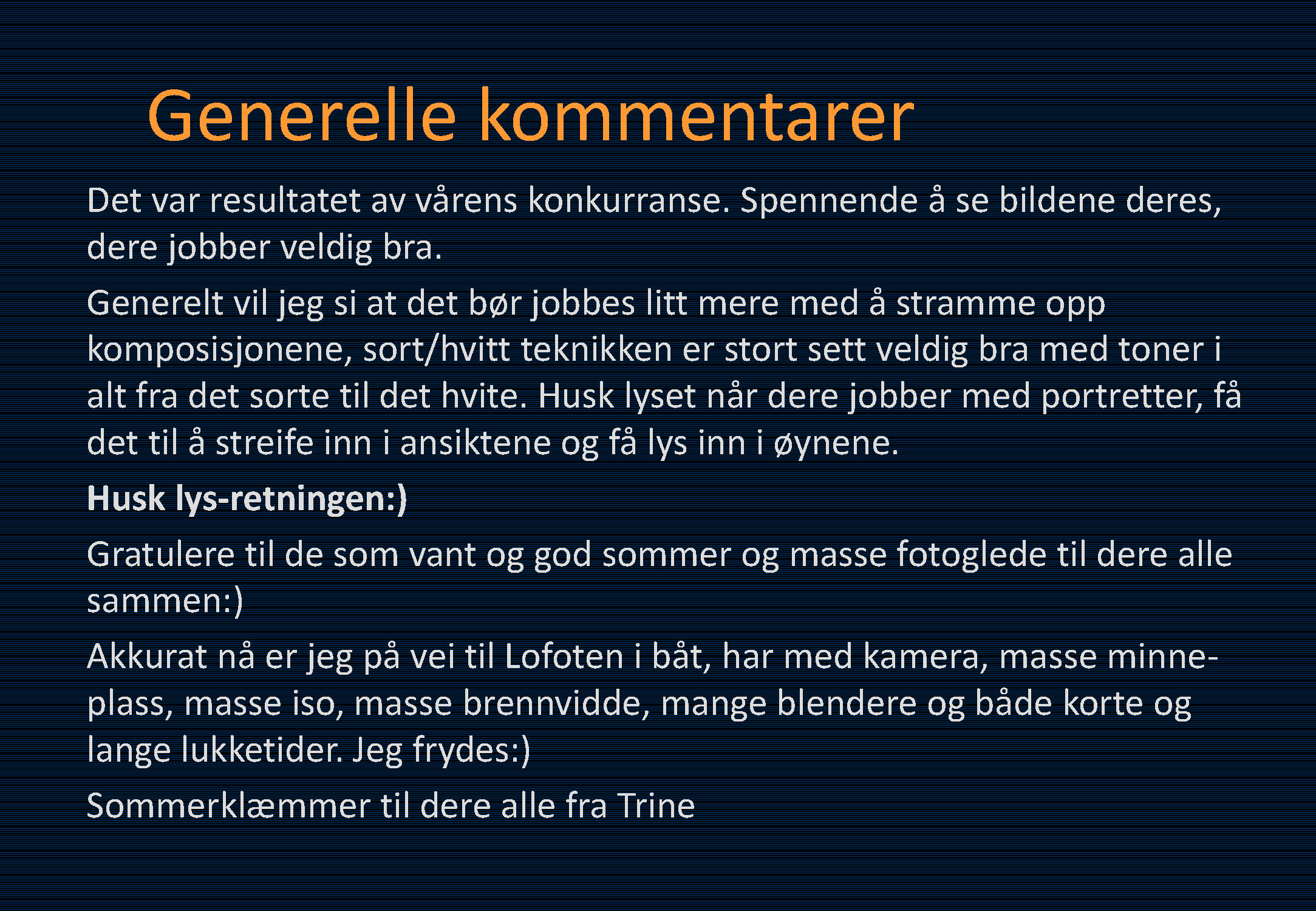 Komplett presentasjon av resultatene med juryens kommentarer: