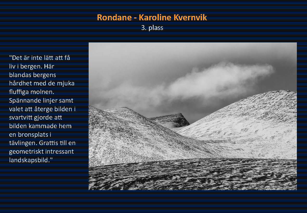 Karoline Kvernvik – «Rondane» | 3. plass Projeksjon monokrom