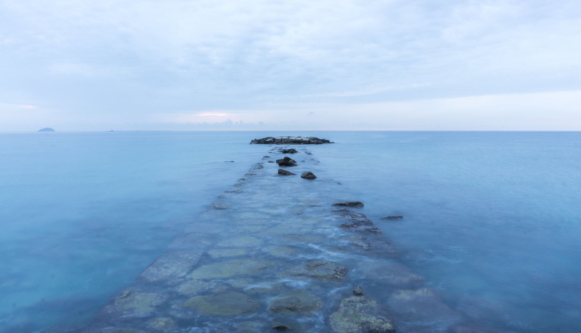 Lekre turkise farger, rene linjer som leder blikket innover. Holmen til venstre kan med fordel tas vekk.