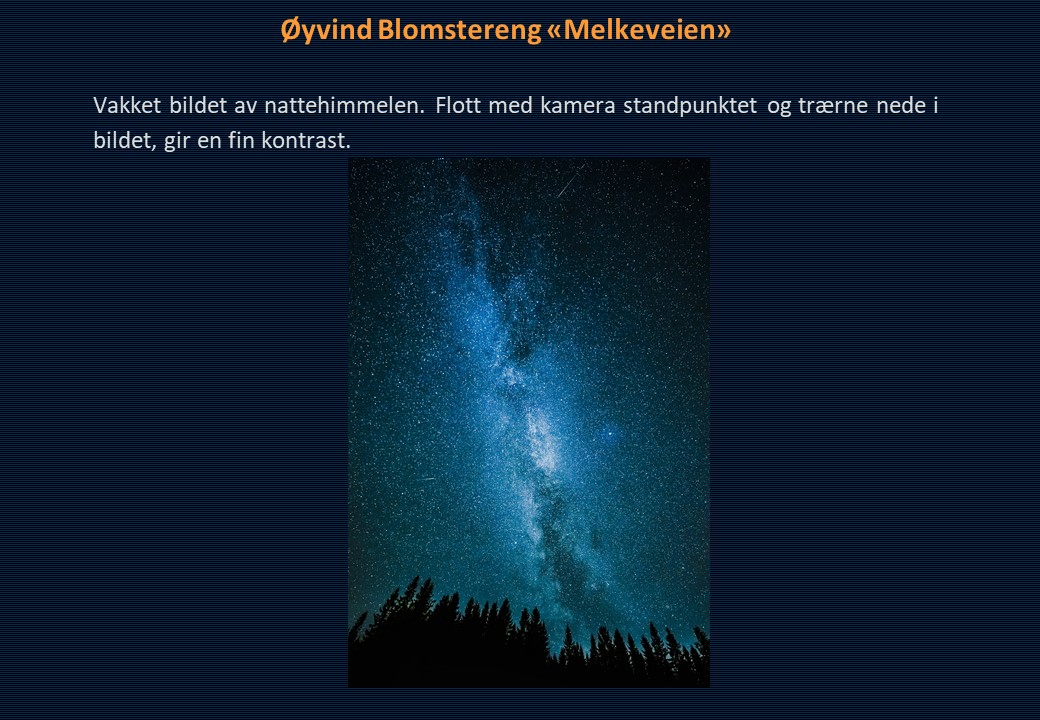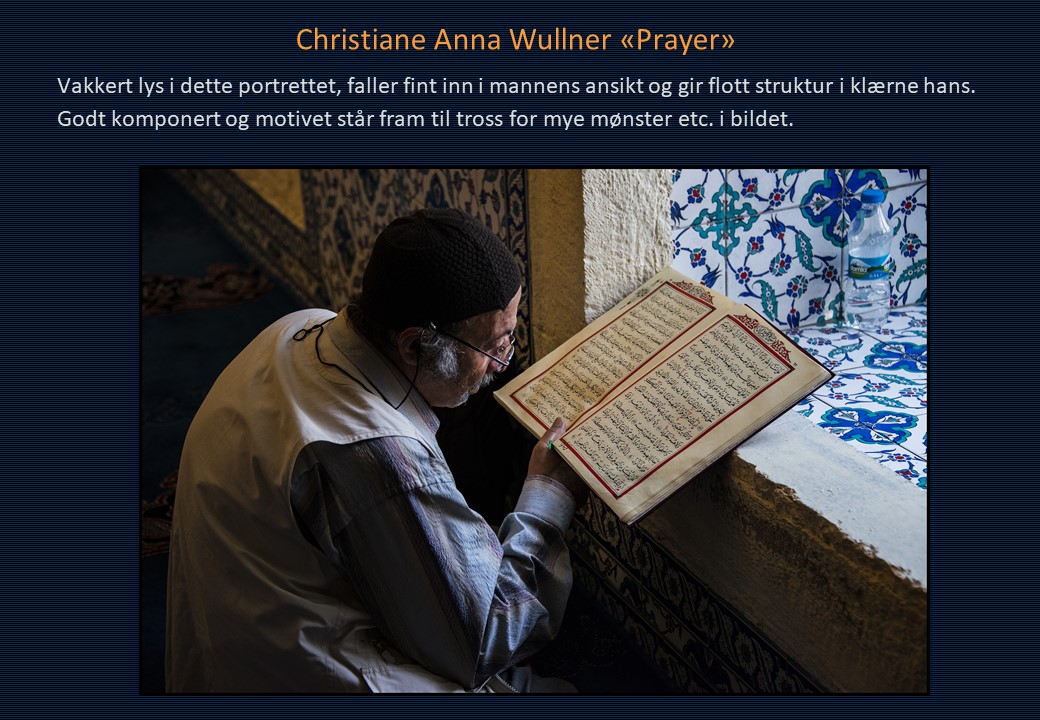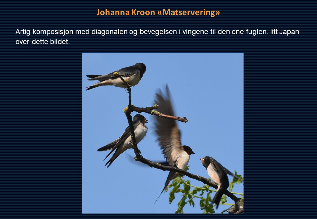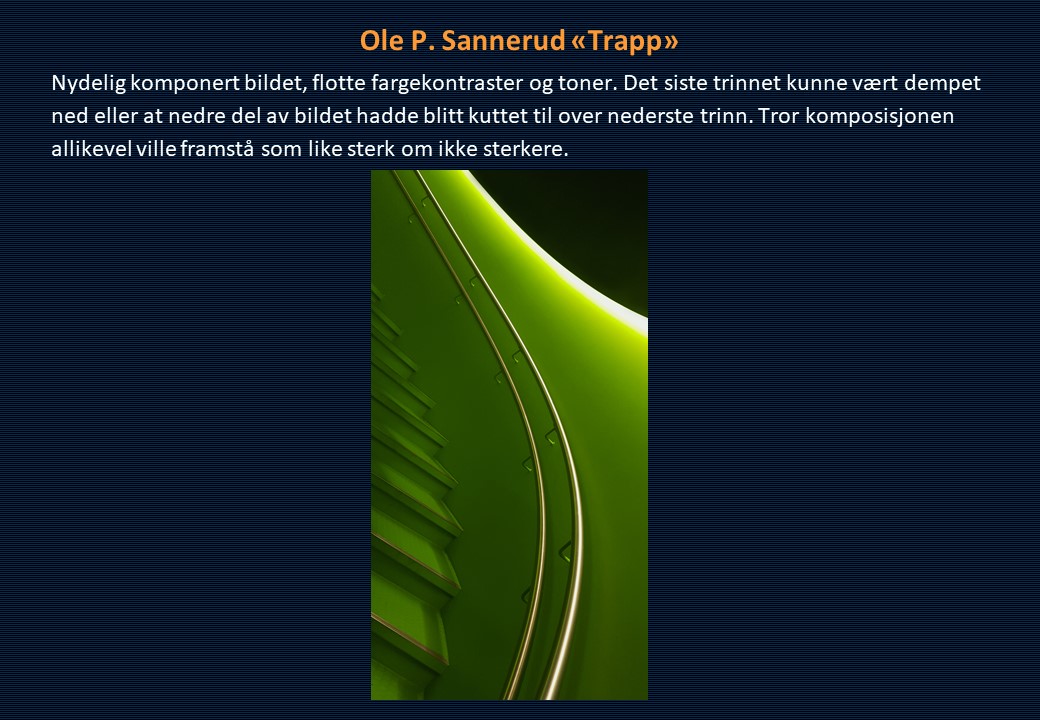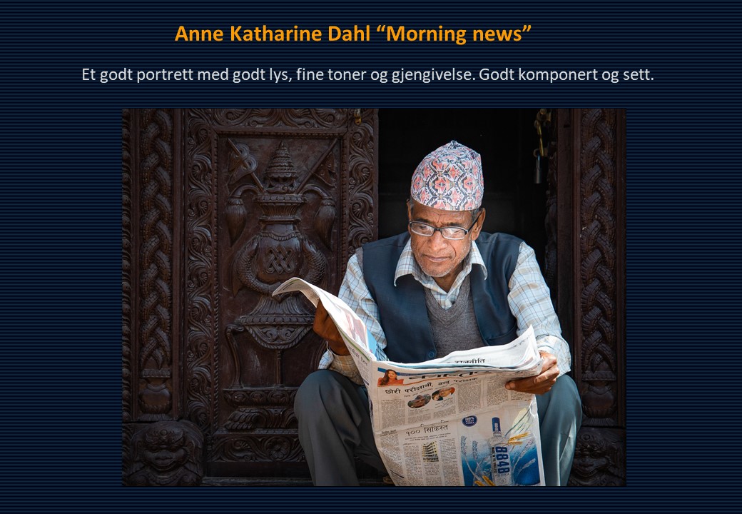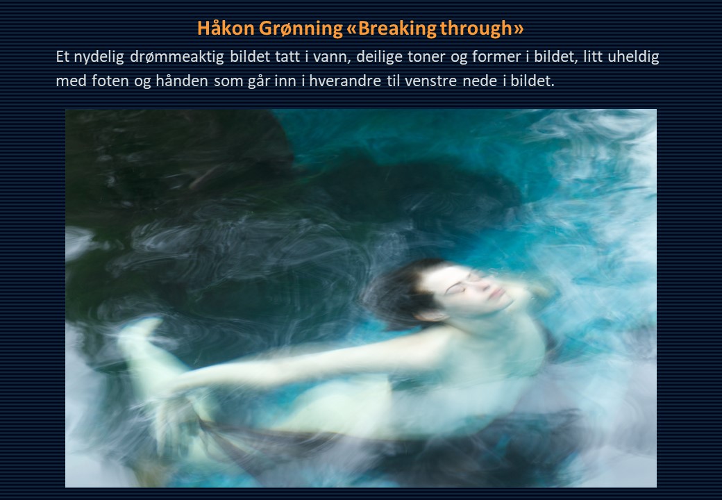 Vinner i klassen «Monokrom – Fritt motiv» ble Mona Wisth med bildet «Elvebredd». 2. plassen gikk til Anne Katharine Dahl med «Smoke». Christiane Anna Wüllner sitt bilde «Hei» og Eli Kristin Hårberg sitt bilde «Liv» kom på delt 3. plass.