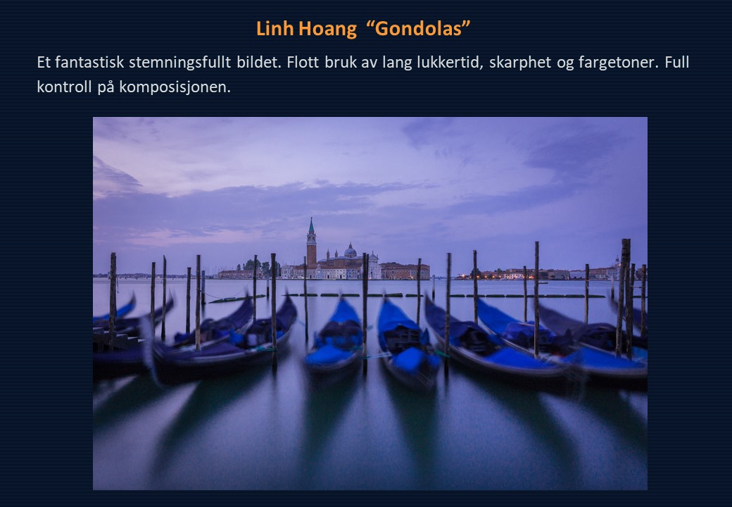 Vinner i klassen «Farge – Fritt motiv» ble Linh Hoang med «Gondolas». Også i denne klassen gikk 2. plassen til Anne Katharine Dahl med bildet «Guts». Christiane Anna Wüllner sitt bilde «Prayer» og Håkon Grønning sitt bilde «Svala white goddess» kom på delt 3. plass.