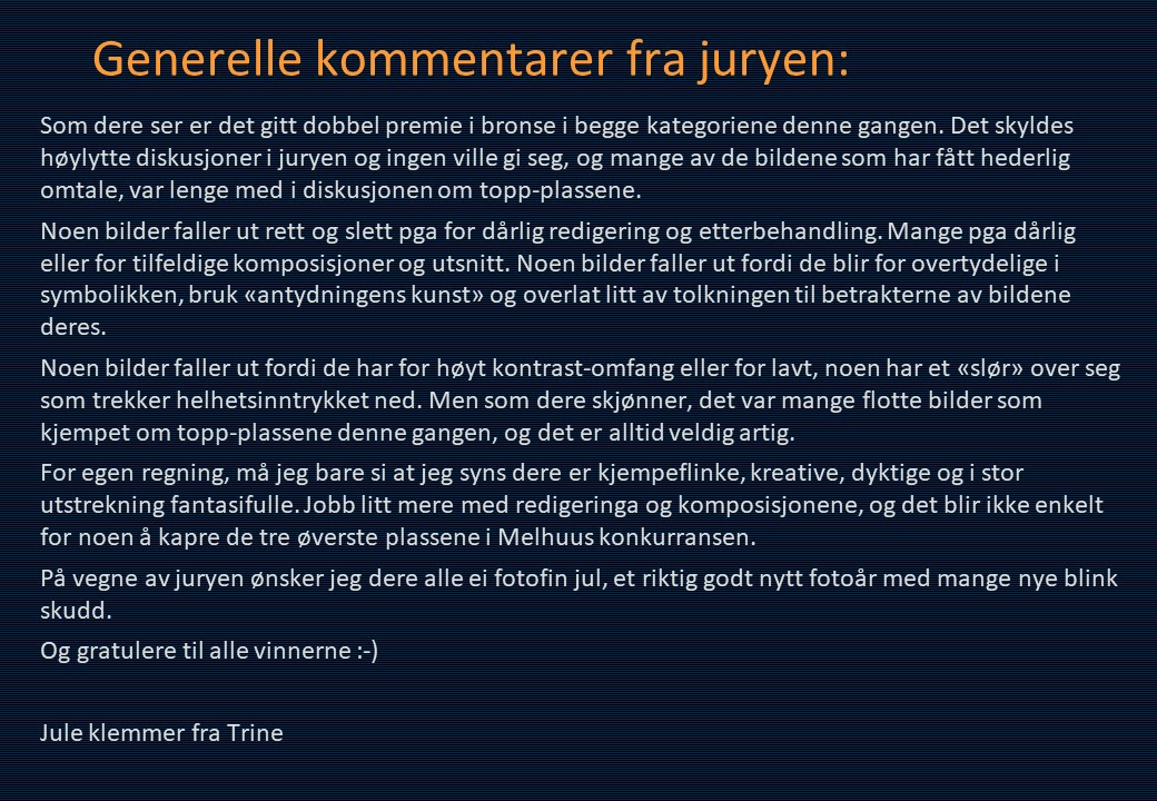 Komplett presentasjon av resultatene med juryens kommentarer: