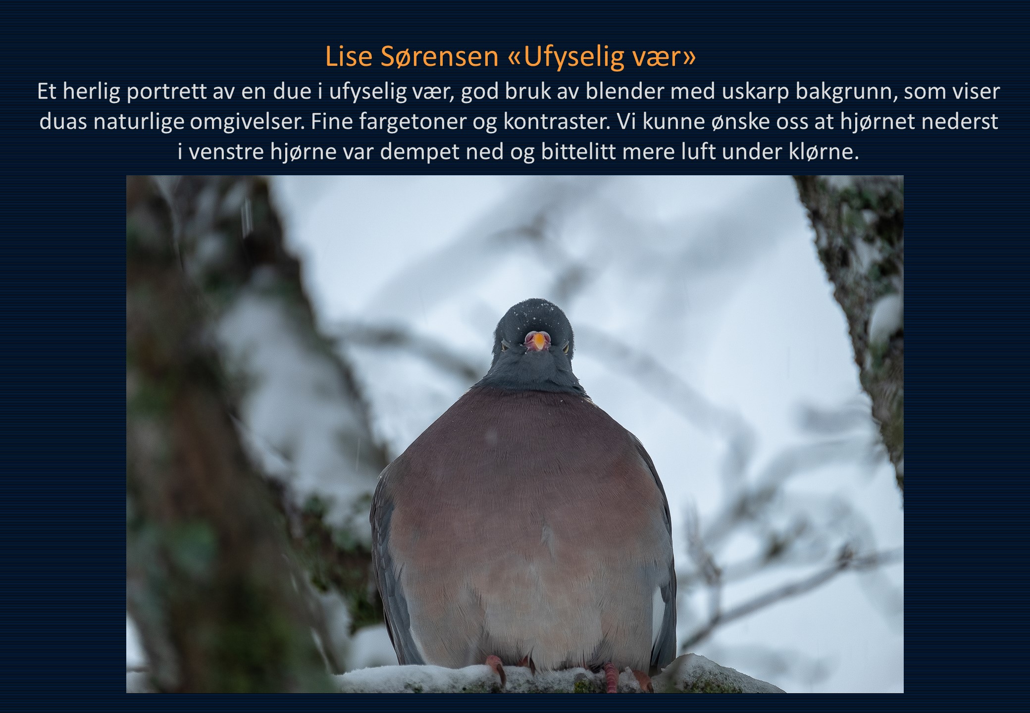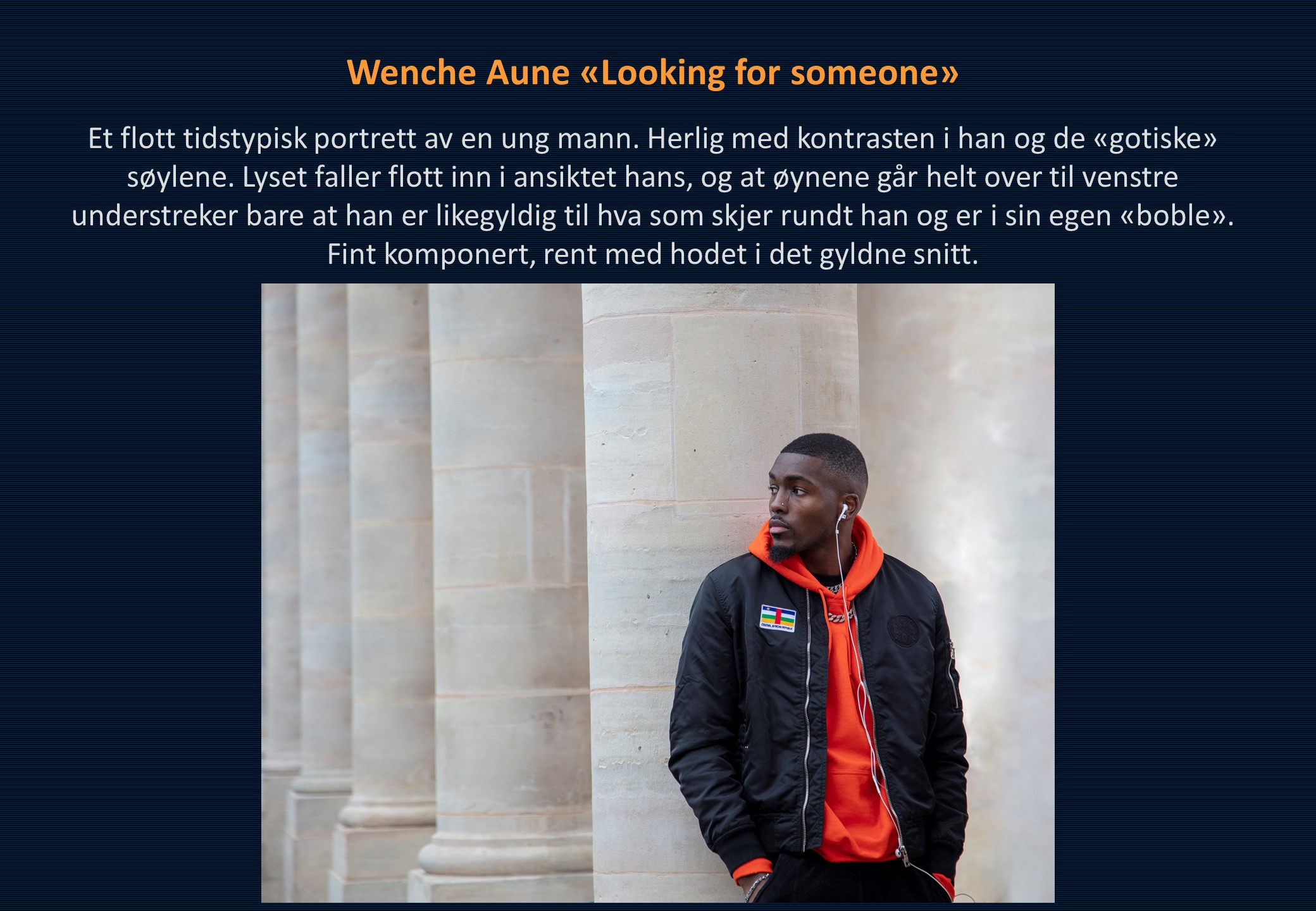 2. plassen gikk til Wenche Aune med bildet «Looking for someone». Lise Sørensen sitt bilde «Ufyselig vær» kom på 3. plass.