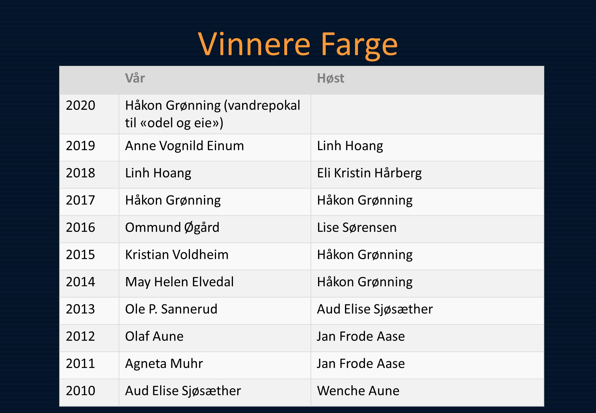 Vinner i klassen «Farge – Fritt motiv» ble Håkon Grønning med «Stay with me». Dette er Håkons femte napp i pokalen som han nå får til odel og eie. Gratulerer!