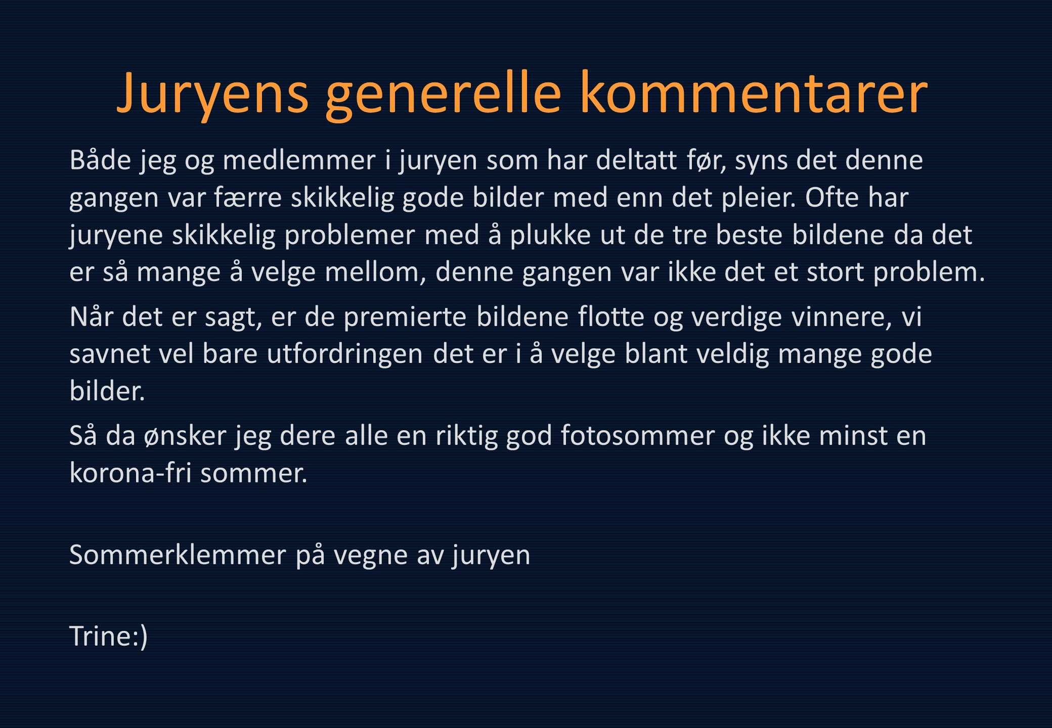 Komplett presentasjon av resultatene med juryens kommentarer: