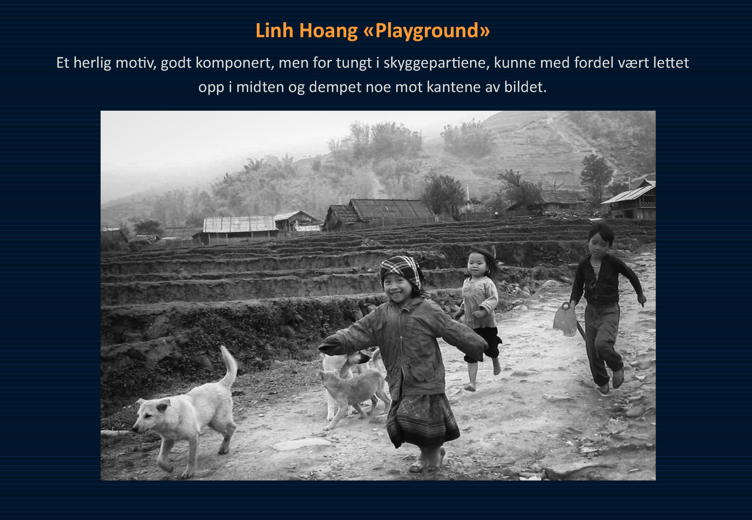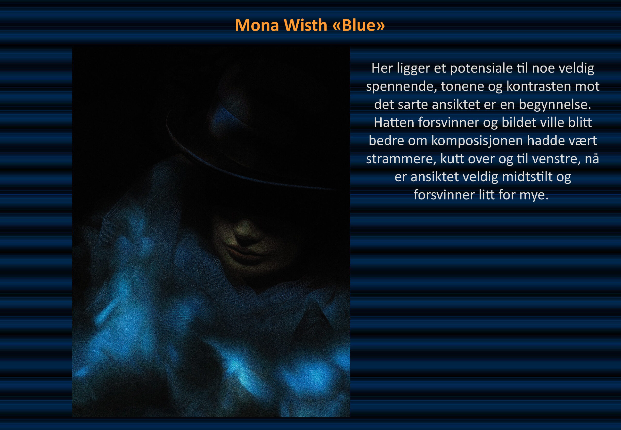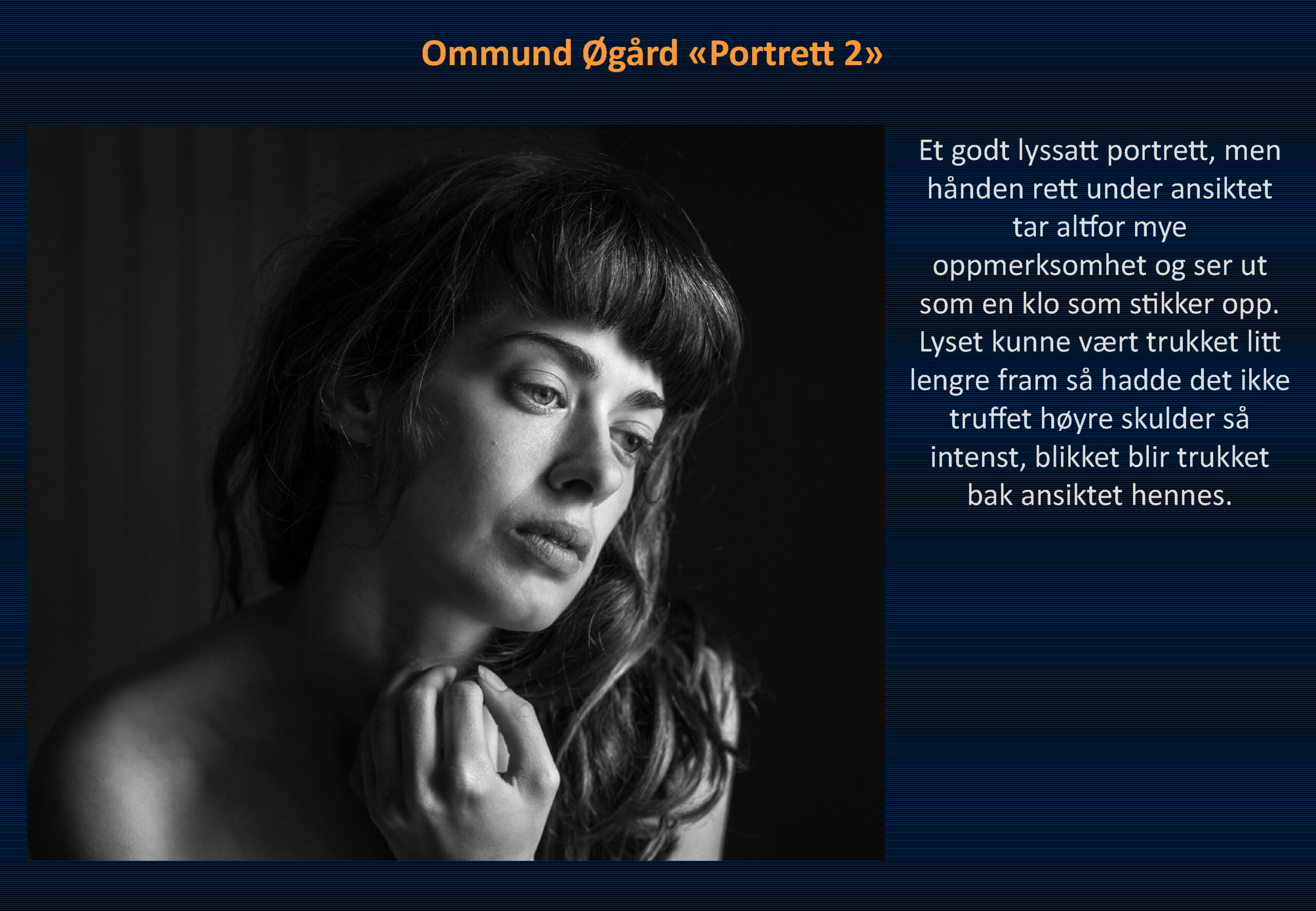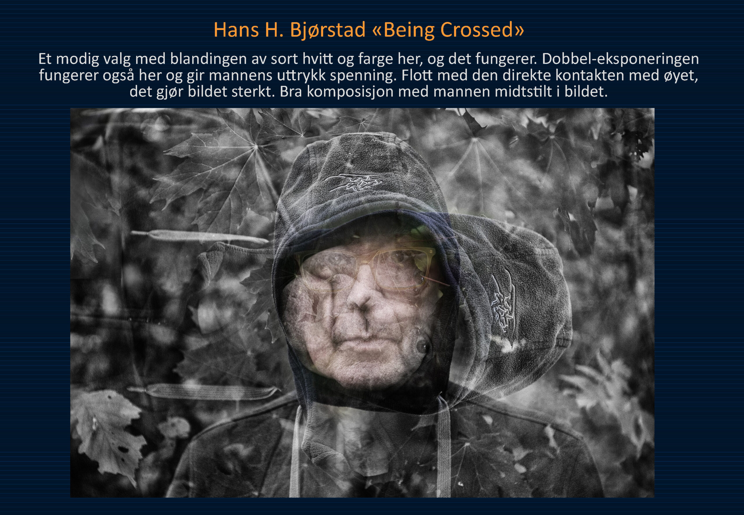 Vinner i klassen «Monokrom – Fritt motiv» ble Ommund Øgård med bildet «Portrett 1». Sharon Burgos kom på 2. plass med «The fisherman and the morning minst» og på 3. plass kom Håkon Grønning sitt bilde «Her skin is like velvet».