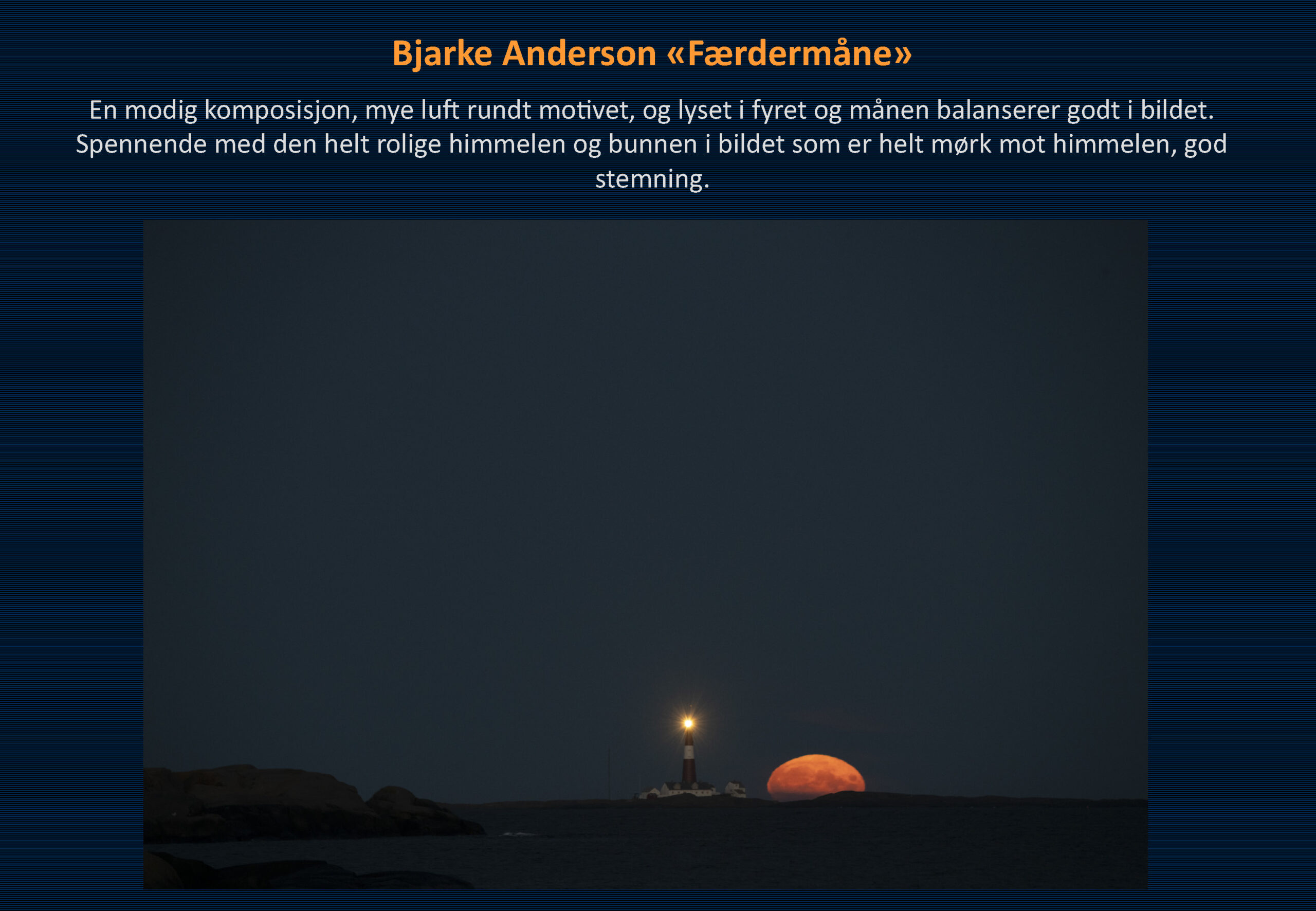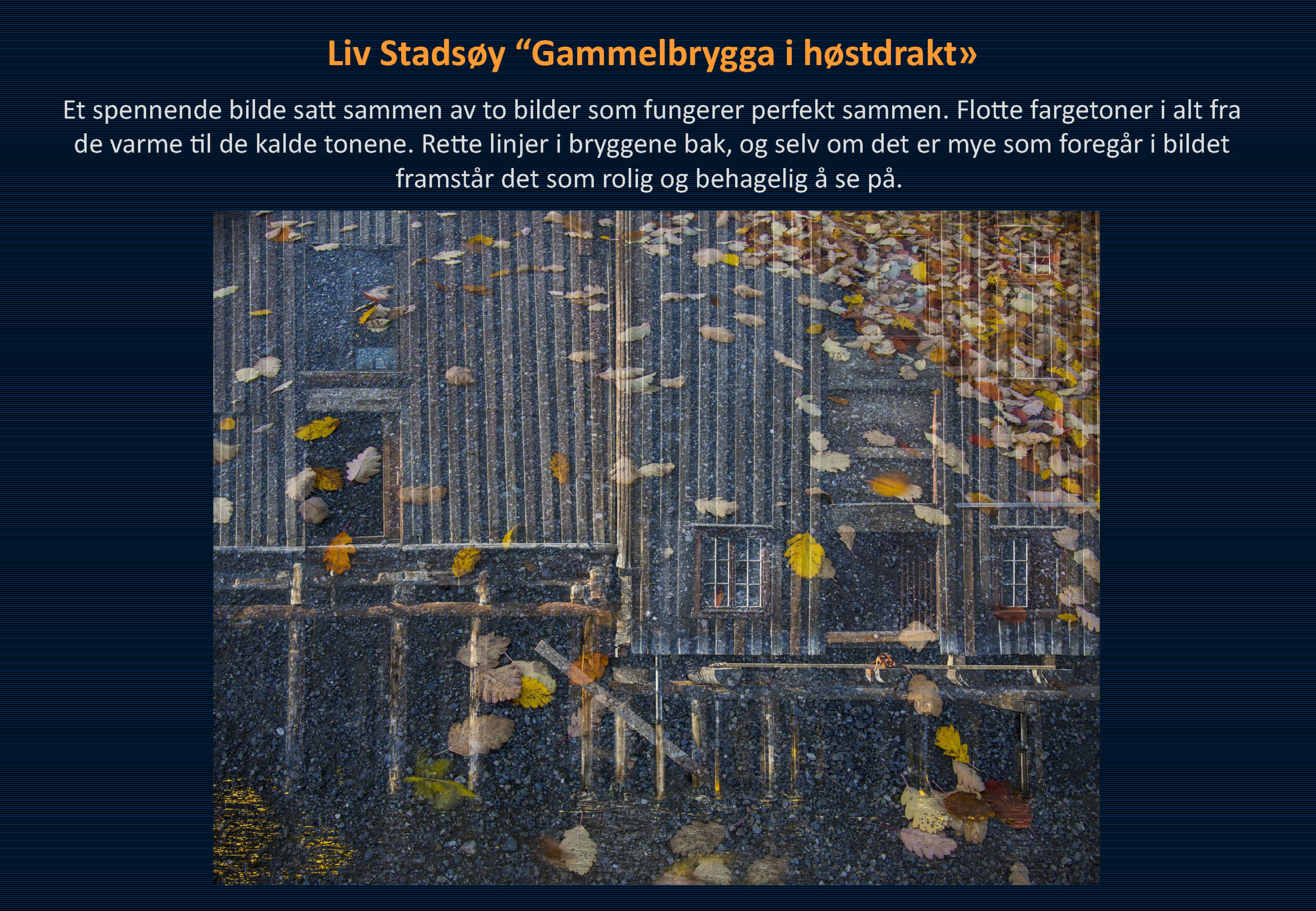 Vinner i klassen «Farge – Fritt motiv» ble Liv Stadsøy med bildet «Gammelbrygga i høstdrakt». 2. plassen gikk til Bjarke Anderson med «Færdermåne». Hans H. Bjørstad sitt bilde «Being Crossed» kom på 3. plass.