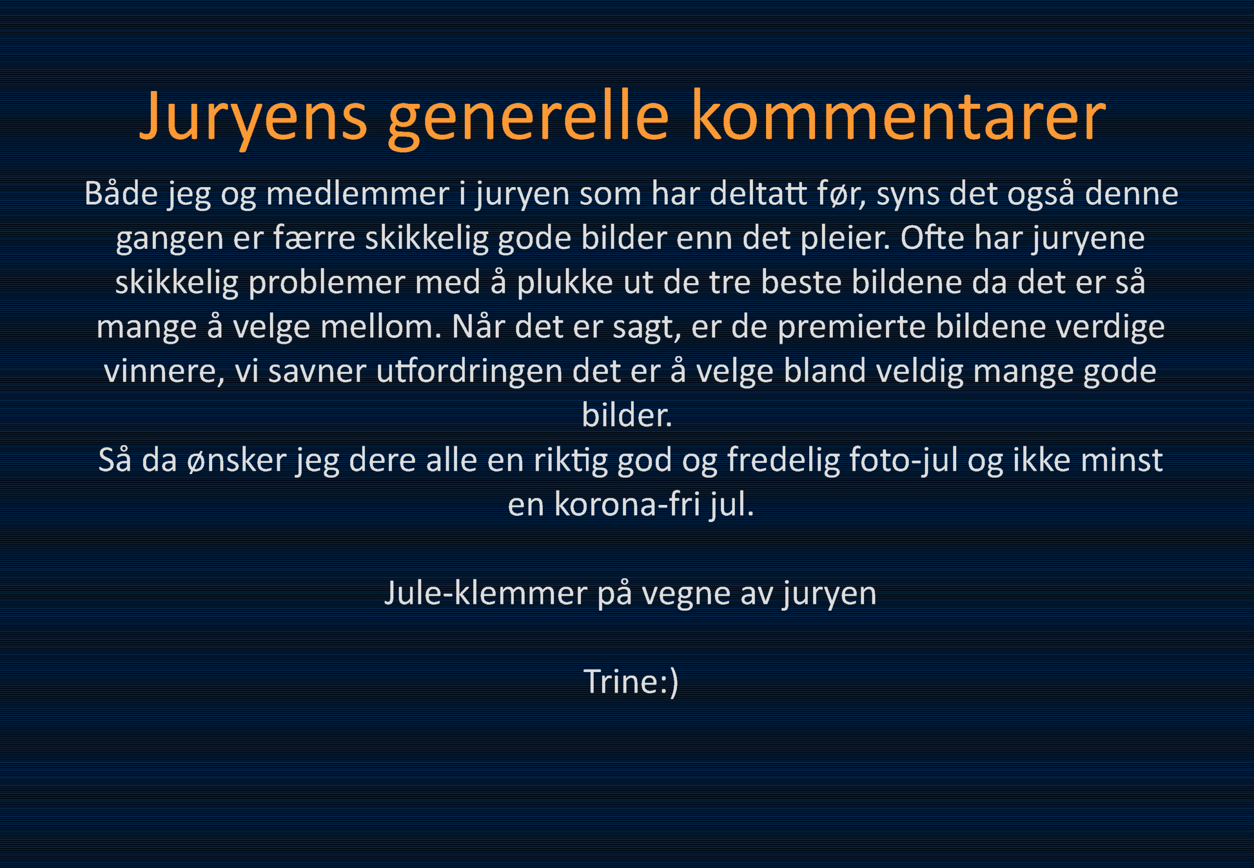 Komplett presentasjon av resultatene med juryens kommentarer: