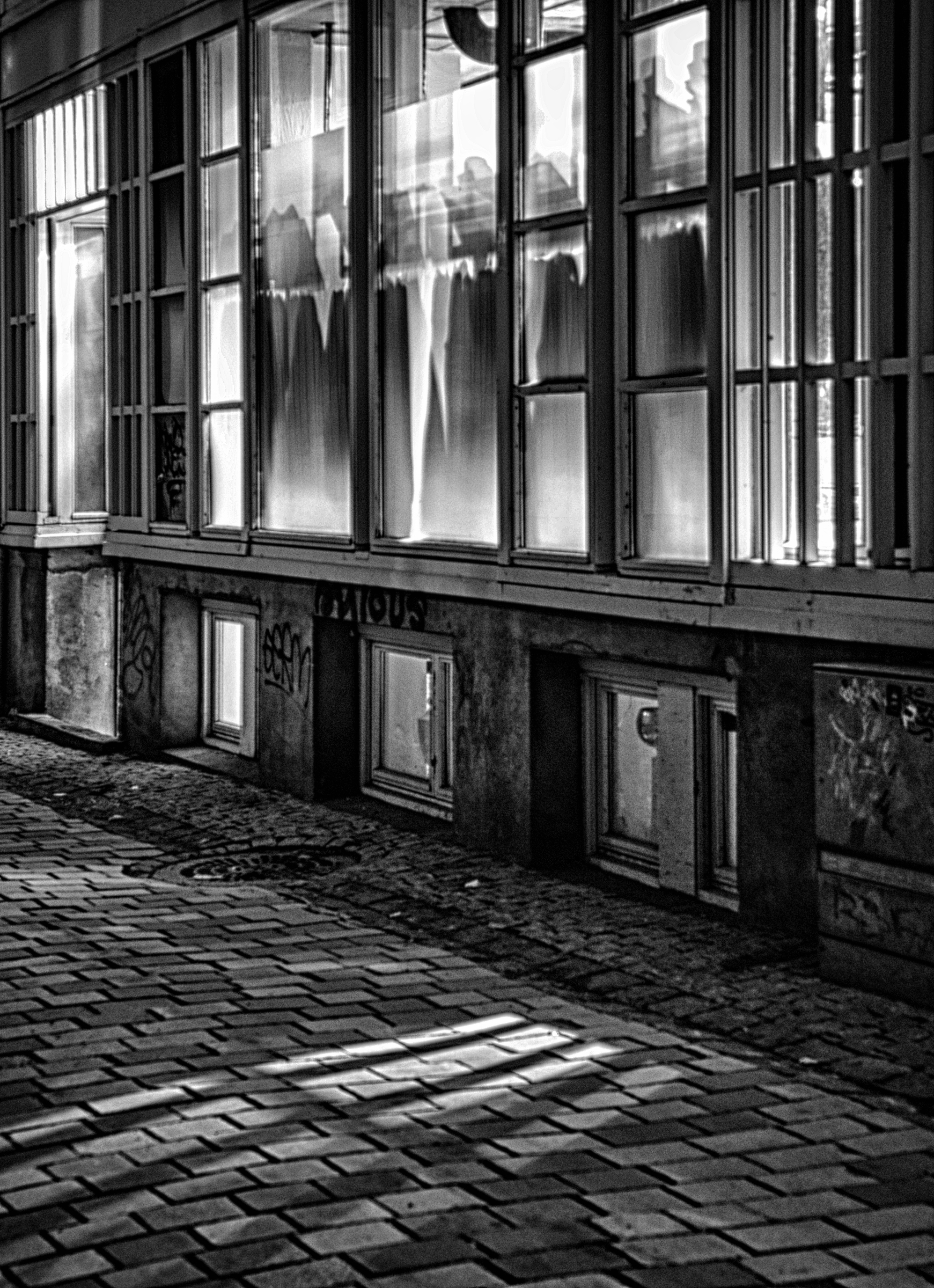 Derfra vandrer vi via de seks lokasjonene med monterte bilder i veitene. Vandringen avsluttes tilbake i Fiskhallen der vi holder en offisiell vernissage kl. 20.00.